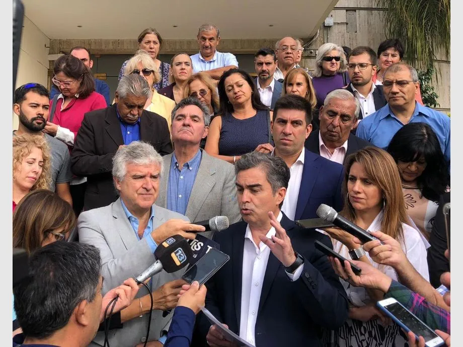 Acompañado de los principales referentes de su espacio, el candidato de la subagrupación Juntos, del frente Unidos por San Juan,  brindó una conferencia de prensa en las escalinatas de la Legislatura Provincial donde presentó  10 reformas políticas.