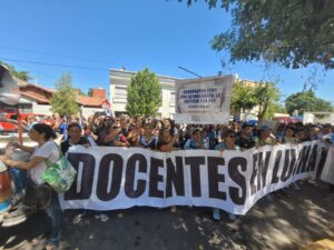 Un grupo de docentes autoconvocados se manifestaron, frente al Centro Civico, recorrieron calles capitalinas y luego se dirigieron  frente al gremio UDAP, en desacuerdo con el aval del gremio a la propuesta salarial que se cerró con Gobierno.