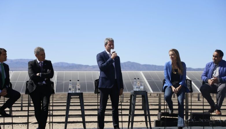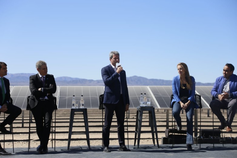 Lo acompañaron la secretaria de Cambio Climático, Desarrollo Sostenible e Innovación de la Nación, Cecilia Nicolini; el presidente de YPF, Pablo González; el CEO de YPF Luz, Martín Mandarano; el senador Rubén Uñac y el intendente de Iglesia, Jorge Espejo, entre otras autoridades nacionales y provinciales.
