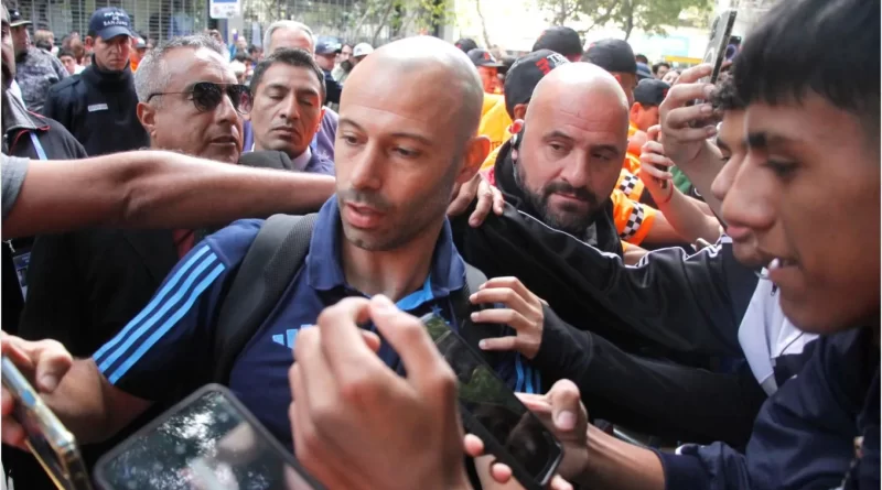 La delegación argentina comandada por Javier Mascherano fue recibida en el centro capitalino por cientos de personas, en su mayoría jóvenes que aprovecharon para fotografiarse con sus ídolos.