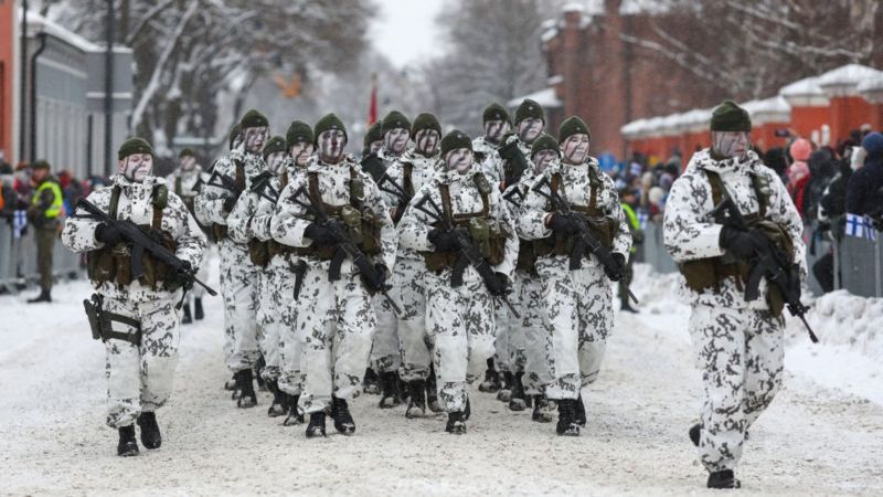 Soldados de Finlandia en unas maniobras militares en el oeste de Finlandia.