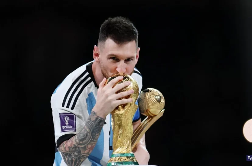 Impresionante mural de Messi y Maradona besando la Copa