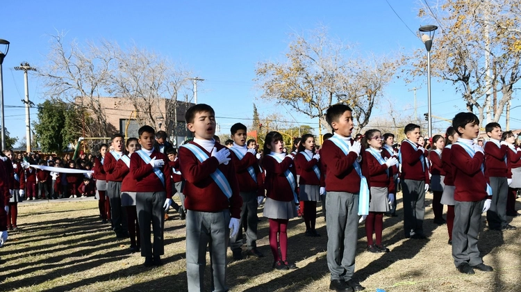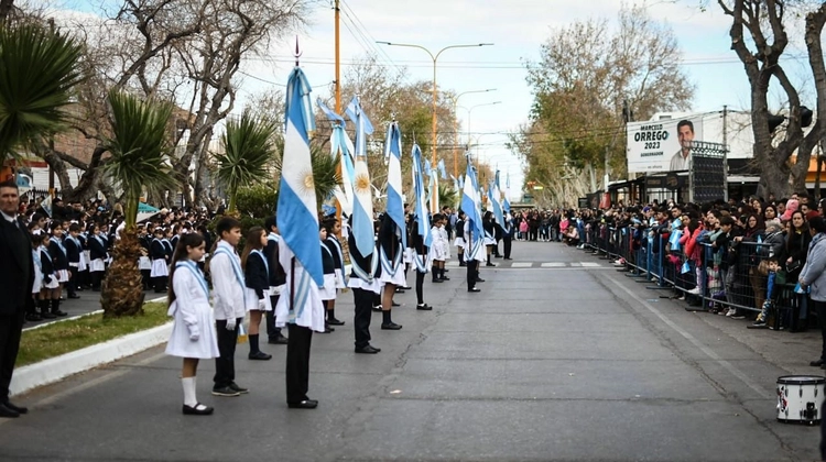 Por su parte, en Sarmiento fueron 650 los estudiantes que le hicieron la promesa a la Bandera y que coparon con los colores patrios la avenida 25 de Mayo.