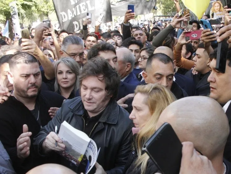 El diputado nacional Javier Milei, precandidato a presidente y líder de La Libertad Avanza, tuvo un paso fugaz por San Juan, en el que dio su clásico discurso económico. Frente a un concurrido auditorio en el Club Social, reiteró que “estamos frente a un cambio de época”, que “hay un modelo que se agotó” y que “estamos en condiciones en reconstruir la Argentina que todos deseamos”. A su vez, volvió a defender su propuesta de dolarizar la economía y eliminar el Banco Central porque “la voracidad de esta maldita casta política no sólo nos hunde en el desempeño económico, sino que mata gente y la mata de hambre, a pesar que en la Argentina sobran alimentos”. Los tres candidatos a gobernador bajo su paraguas, Paola Miers, Agustín Ramírez y Yolanda Agüero, nucleados en el frente Desarrollo y Libertad, coincidieron en que su mensaje fue una bajada de línea para utilizar en la campaña y llegar al electorado, y que su visita constituyó un apoyo de cara a las elecciones del 14 de mayo. A su vez, los referentes locales no se despegaron del “león” en su caminata y le retribuyeron el respaldo al acompañarlo con sus seguidores. Milei recorrió media cuadra de la Peatonal y, como ocurrió en noviembre, generó un caos en el microcentro (ver Marea libertaria…).
