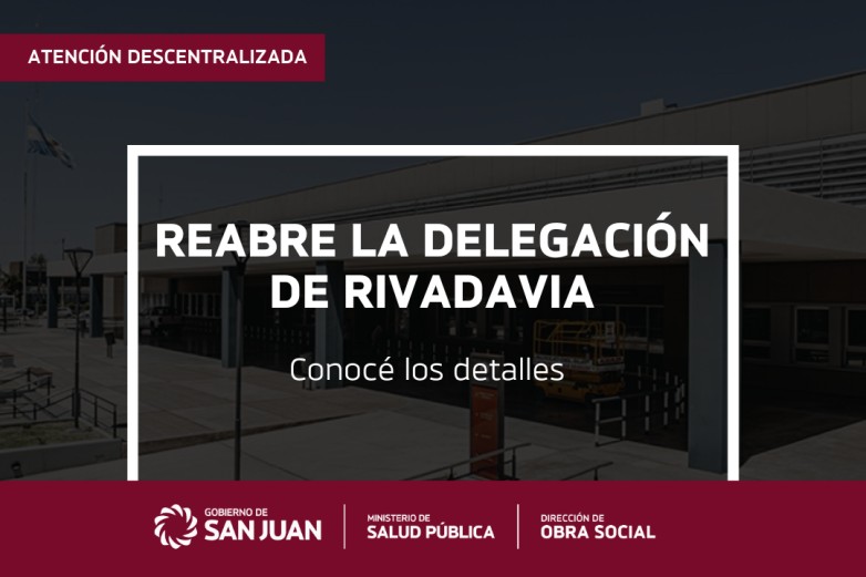 Para facilitar la realización de trámites por parte de los afiliados que residen en Rivadavia, la Dirección de Obra Social Provincia puso en funcionamiento la delegación dentro del “Hospital Público Marcial V. Quiroga”, particularmente en el edificio de la ex Guardia Médica, ubicada en Av. Libertador General San Martín 5401.