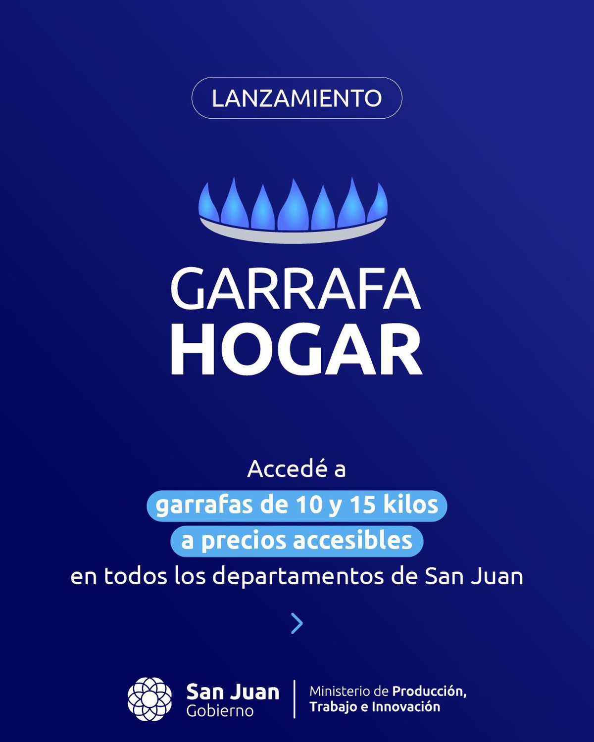 Teniendo en cuenta la situación difícil por la que atraviesa la economía nacional, San Juan desde este martes contará con el programa “Garrafa hogar” mediante el cual los sanjuaninos podrán adquirir la garrafa a la mitad de su precio. Dicho beneficio permitirá comprar garrafas de 10 y 15 kilos a precios muy accesibles, en cualquier departamento de la provincia.