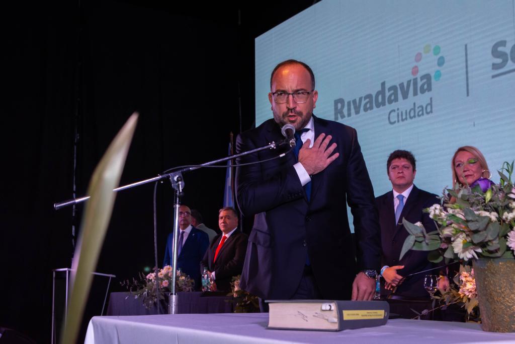 En un acto llevado a cabo en el bello  Parque de Rivadavia, Sergio Miodowsky asumió como jefe comunal. Tras  la toma de juramento  a funcionarios y concejales quienes serán los que acompañaran  en su gestion, emitio un breve discurso.