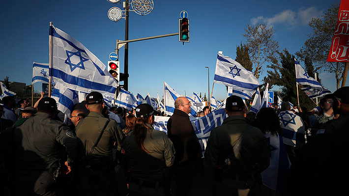 Tras ello, las masivas movilizaciones siguieron hoy en Jerusalén, con una protesta que rodeó el Parlamento israelí y congregó a más de 100.000 personas, un movimiento que no piensan parar a pesar del anuncio de Netanyahu. “El Gobierno ha llevado a Israel al borde de la destrucción y aún amenaza con desmantelar la democracia. Un congelamiento temporal no es suficiente y las protestas continuarán intensificándose hasta que el plan sea rechazado en la Knéset”, aseguró el Movimiento Paraguas contra la Dictadura, que aglutina a varios grupos civiles.