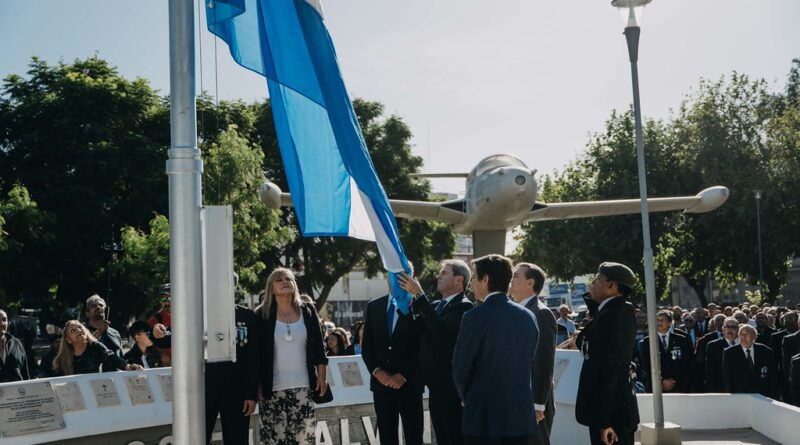 Posteriormente, tuvo lugar la colocación de una ofrenda de laureles en el monumento Honor a los Héroes de Malvinas y el descubrimiento de un busto en escala real en memoria del cabo primero Agustín Hugo Montaño.