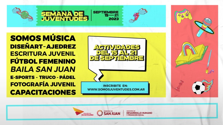 Se viene un mega evento en la provincia de San Juan, cuando del 15 al 21 de septiembre se lleve adelante la “Semana de Juventudes”, una iniciativa que surge desde el Ministerio de Desarrollo Humano y Promoción Social y que tendrá una variada cantidad de actividades en diferentes temáticas.